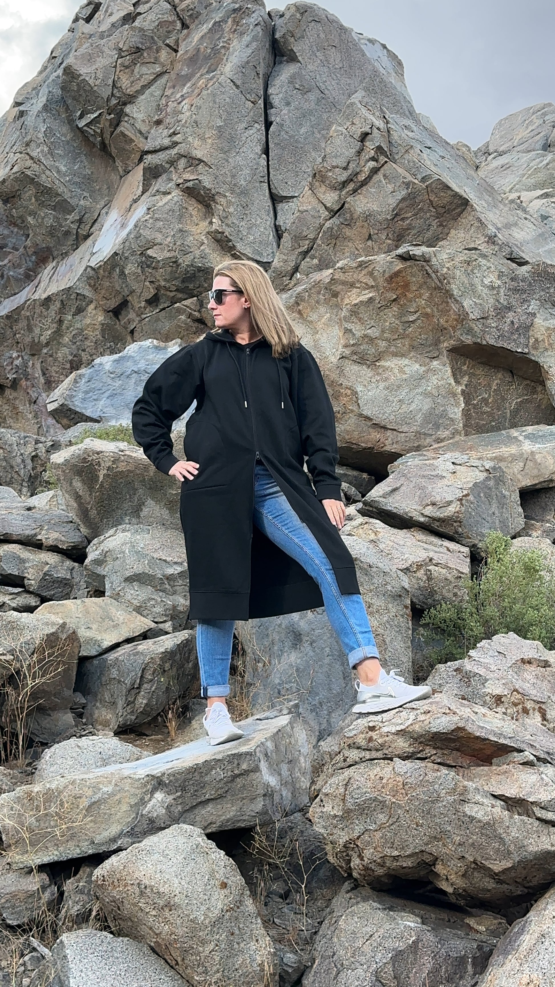 Meet your new everything hoodie. Use it as a light jacket, layer it, cover up at the beach, pool, toss it on after your early morning yoga, or skating session. The Duster Hoodie is whatever you make it.